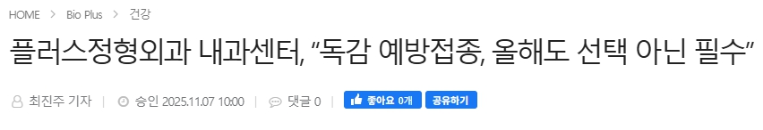 [바이오타임즈] 송도 플러스정형외과 내과센터가 환절기 맞이 독감 예방접종의 중요성을 강조하고 나섰다.